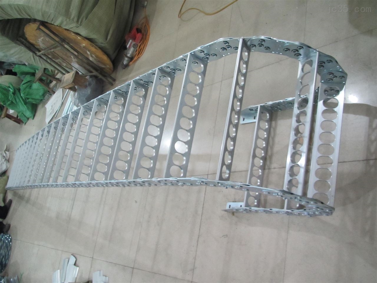 (3)單元鏈節由左右鏈板和上下蓋板組成,鋼鋁拖鏈每節都能打開,裝拆方便,不必穿線,打開蓋板后即可把電纜、油管、氣管、水管等放入鋼制拖鏈。