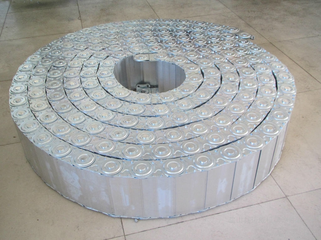 鋼鋁拖鏈的主體是由鏈板(采用優(yōu)質(zhì)鋼板經(jīng)淬火后再拋光鍍鉻/鍍鋅/噴塑處理)、支撐板(擠拉鋁合金)、軸銷(合金鋼)等部件組成.使電纜或橡膠管與拖鏈之間不產(chǎn)生扭曲變形,鏈板經(jīng)鍍鉻處理外形效果新穎,結(jié)構(gòu)合理,靈巧強(qiáng)度高,該產(chǎn)品鋼性好,不變形.安裝方便,使用可靠,易拆裝,不下垂.由于本產(chǎn)品外形精美,可在較大程度上增強(qiáng)機(jī)床設(shè)備的整體藝術(shù)美觀效果,增強(qiáng)我國(guó)機(jī)床,機(jī)械設(shè)備在國(guó)際市場(chǎng)的競(jìng)爭(zhēng)能力。