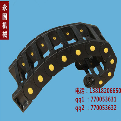 電纜拖鏈適用于數控機床、加工中心、自動化機械及生產線等各類機床、機器人、運輸機械、測量儀器、搬運裝置以及其它驅動控制作為電線、電纜液、氣軟管的防護裝置,電纜拖鏈能隨機床、機械設備移動部件協調地運行,可發揮安全保護和導向的能力,可延長被保護的電線、電纜、液、氣軟管的使用壽命,降低消耗,可大大改善機床、機械設備的電線、電纜、液、氣軟管分布零亂的狀況,電纜拖鏈使之整齊、規則地排列在一起,能增強機床、機械設備的整體藝術造型效果。