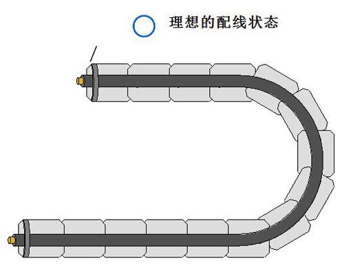 如果電纜在布線時受到張力拉伸,會與拖鏈的內壁產生摩擦導致護套磨損。反之如果布線過于松散,同樣也會與拖鏈的內壁產生摩擦造成護套磨損,并且容易與其他的 電纜產生纏繞現象。電纜的布線長度應設定在剛好能通過拖鏈的中心線為宜。