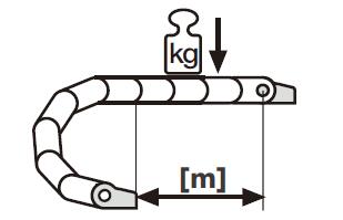 所選產(chǎn)品的前言部分找到圖表。在本章的后續(xù)部分,你可以找到樣本中所有系列產(chǎn)品的FLG與FLB值。通過這個(gè)圖表你可以找到對(duì)應(yīng)拖鏈的承載及行程查到所選拖鏈的最大負(fù)載